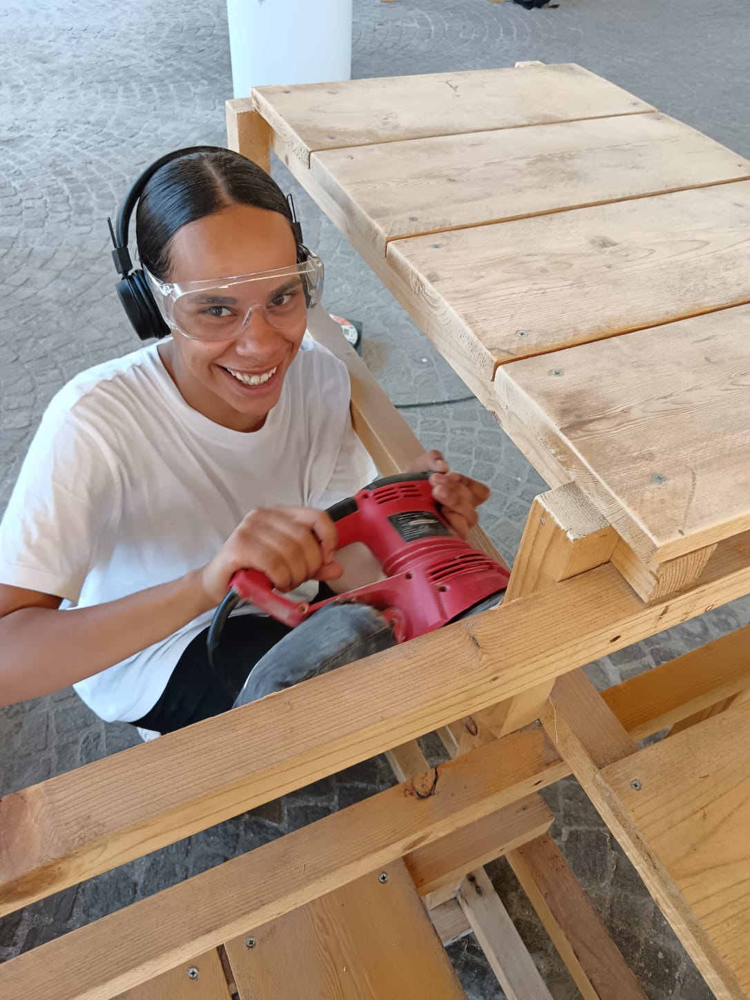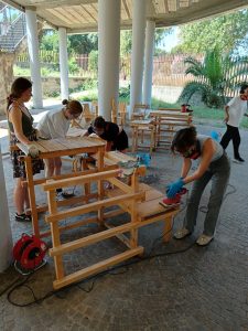 The workshop appointments took place in June and July on a weekly basis with a group of young locals who participated in regenerating the wooden furniture.